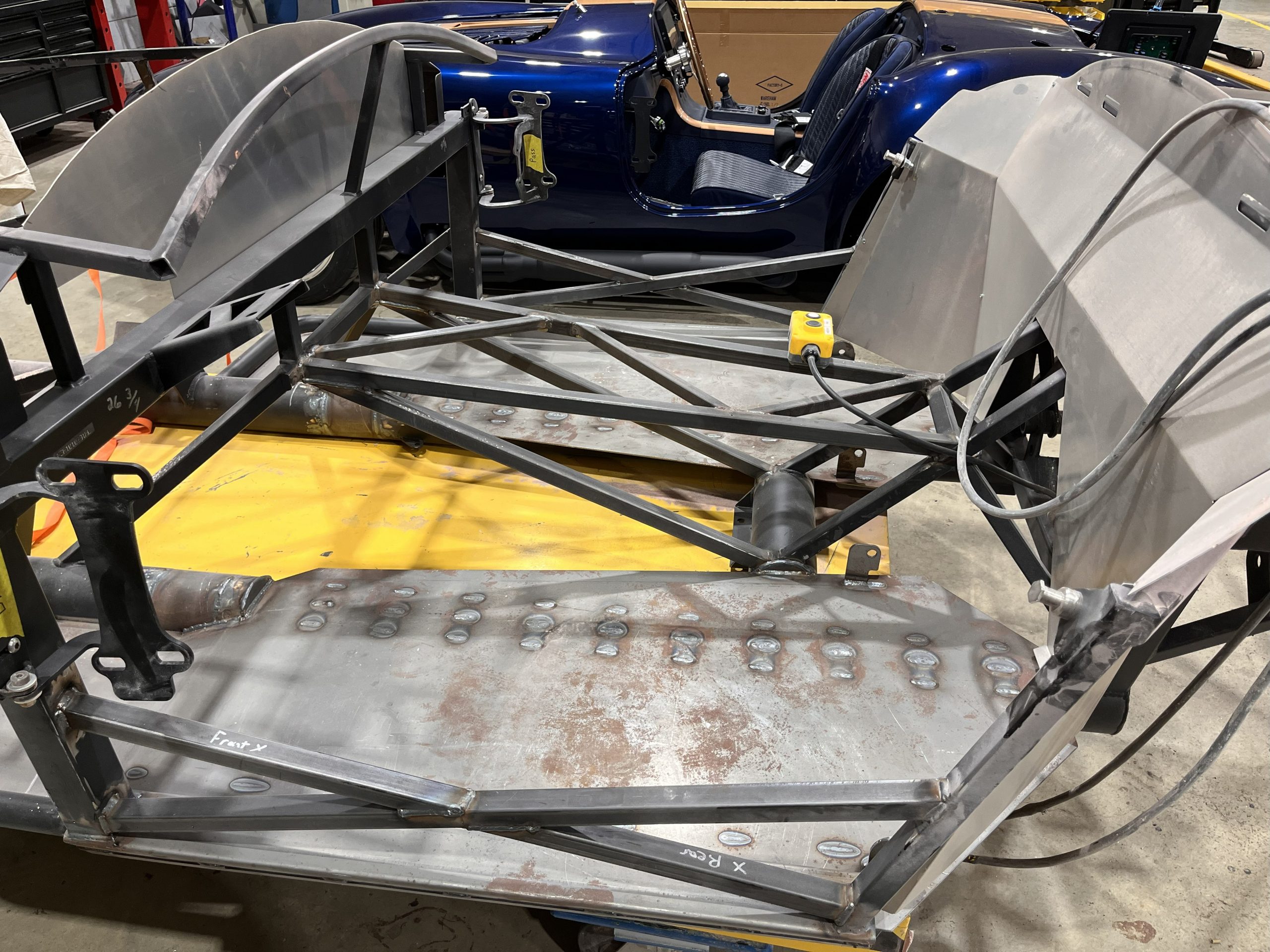 Our Stretch roadster package is for the driver that would like a little extra room while still being the classic dual tube chassis design. Our team extends the chassis in the cabin area 4″ and lowers the floor by about 1″. Then we modify the fiberglass body and doors to create a seamless but structurally sound extended roadster.